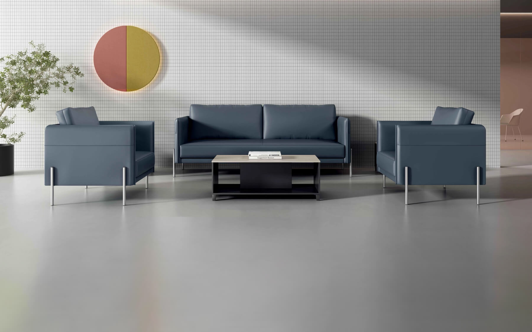 Designed with an emphasis on ultimate comfort, the chair’s spacious form is elegantly supported by a lightweight steel frame, creating a striking balance of substantial comfort and visual lightness.
